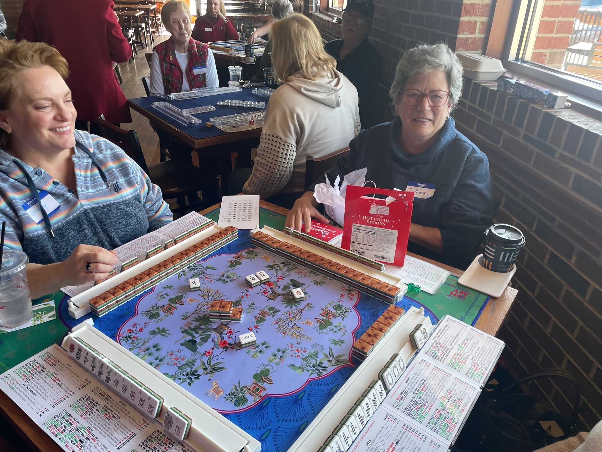 Tacos, Tiles & Holiday Smiles was a wonderful success, filled with great play, laughter, and festive fun. A big highlight of the day was JoAnn Mason-Briggs winning the grand prize by guessing the exact number of tiles in the tile jar—an impressive and well-earned win! Everyone enjoyed their holiday cracker, each one packed with a tile ornament and plenty of chocolate (and really… who doesn’t love chocolate?).